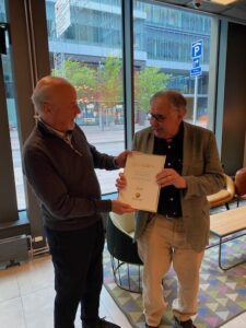 Bilden visar överlämningen av diplom till Hugo Lagercrantz från ordföranden Hans Curman